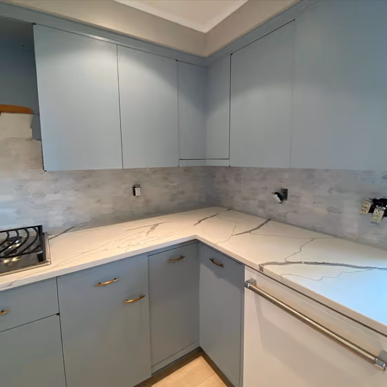 Want a stylish kitchen? View real-life photo examples of this fascinating cool hue is paired with backsplashes, countertops, and hardware.