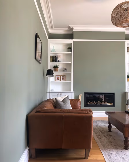 Check out this stunning Mid-tone color used in real living rooms. Explore how this Green shade can create a unique space