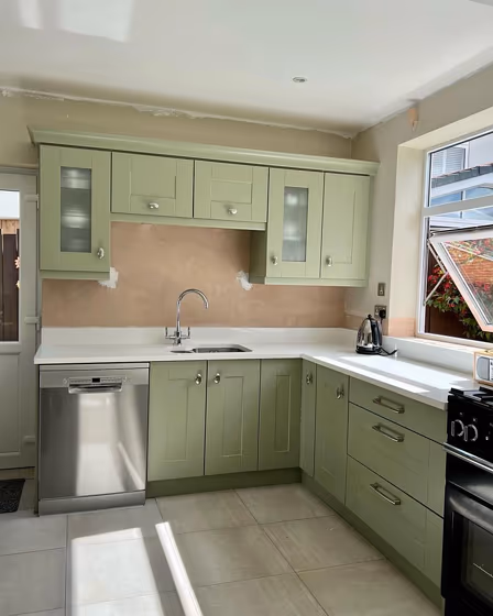 Farrow and Ball 19 on kitchen cabinets (5 photos)