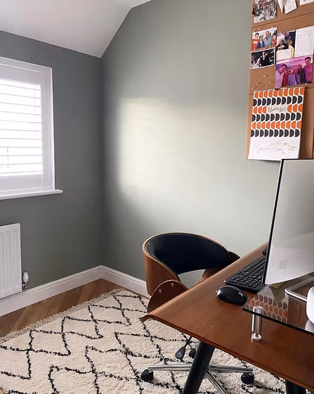 Elevate your space with the serene charm of Farrow and Ball 19 Lichen. This soft, muted green-grey hue brings a sophisticated touch to any room. Pair 19 Lichen with accents in Farrow and Ball 03 Old White for a classic, timeless look, or with Farrow and Ball 16 Hay for a fresh, nature-inspired feel. Embrace the versatility of this color by combining it with Farrow and Ball 26 Down Pipe for a modern, elegant contrast. Whether used on walls, furniture, or trim, Farrow and Ball 19 Lichen effortlessly complements a range of color palettes, adding depth and tranquility to your interiors.