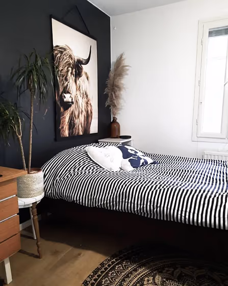 Act like a pro: Mixing warm and cool shades is a must have to get harmonius interior. Add accents that contrast with the primary color to create visual balance. If your walls are a warm color, don’t forget to add accent in cold colors (furniture, art, décor). A good practice is too use a complementary color scheme.