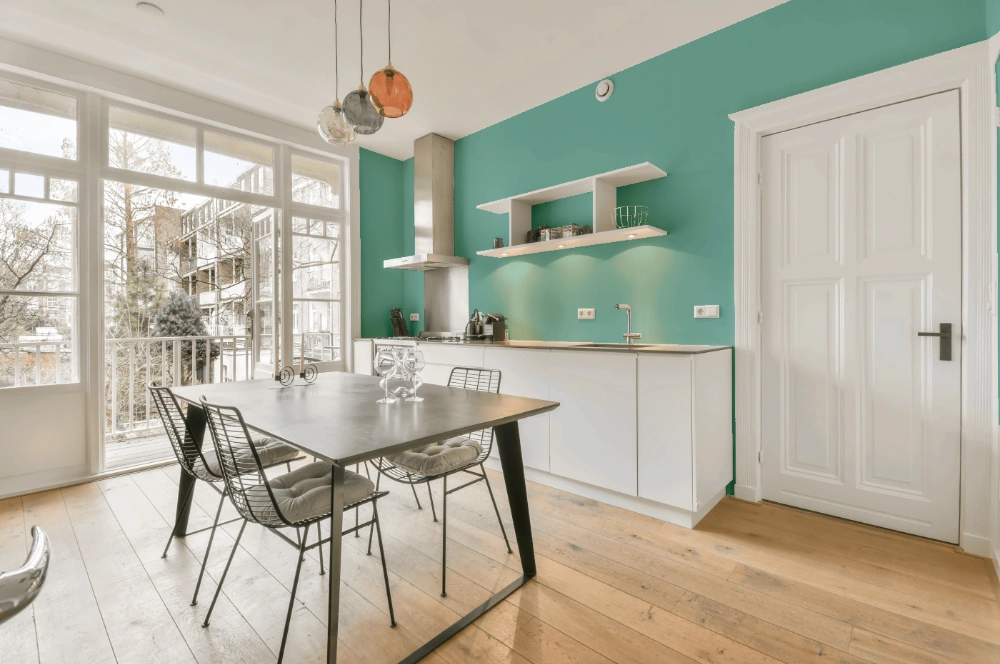 Let’s dive into a full Light green paint color review. Take a look at pictures of real interiors and exteriors painted with beautiful RAL 6027. Find out if this gorgeous cold green paint color would look great on your living room walls or trims, kitchen cabinet, bedroom accent wall, bathroom or house exterior.
