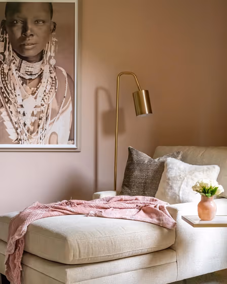 Check out this stunning Mid-tone color used in real living rooms. Explore how this Pink shade can create a unique space