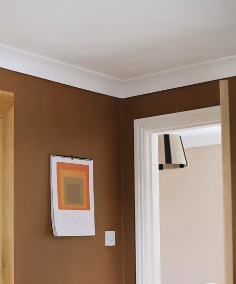 This color scheme is a combination of two shades that are opposite each other on the color wheel. The high contrast between these colors creates a vibrant and dynamic visual effect. For the color Affogato with a red hue, complementary colors are those with a green hue close to 207, such as Little Greene Juniper Ash and Bone China Blue.