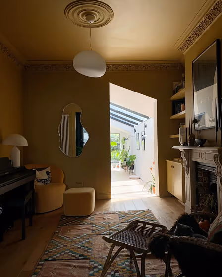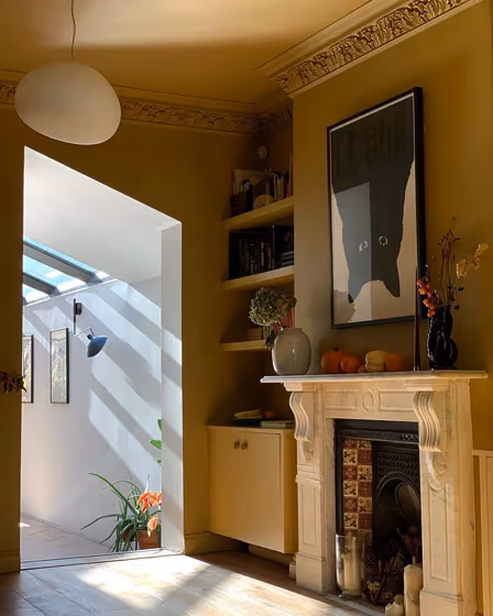 Check out this stunning Mid-tone color used in real living rooms. Explore how this Yellow shade can create a unique space