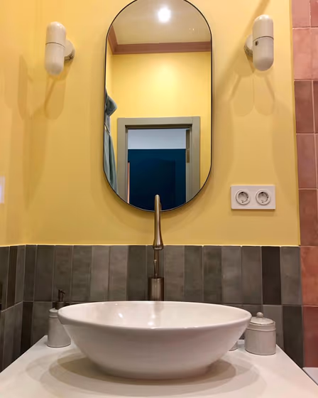 Act like a pro: Mixing warm and cool shades is a must have to get harmonius interior. Add accents that contrast with the primary color to create visual balance. If your walls are a warm color, don’t forget to add accent in cold colors (furniture, art, décor). A good practice is too use a complementary color scheme.