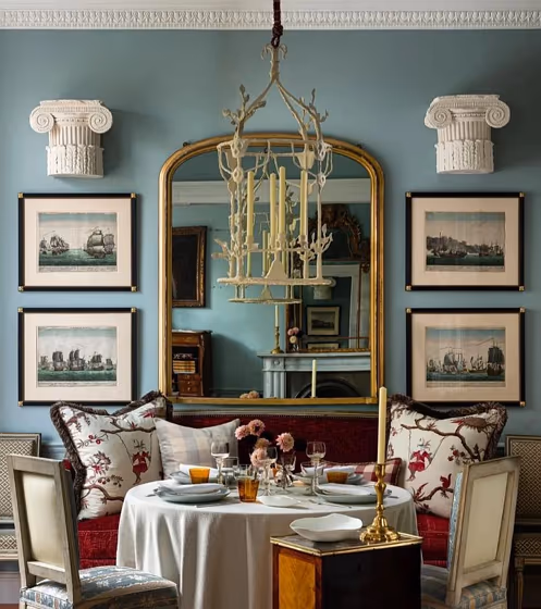This color scheme is a combination of two shades that are opposite each other on the color wheel. The high contrast between these colors creates a vibrant and dynamic visual effect. For the color Celestial Blue with a green hue, complementary colors are those with a red hue close to 339, such as Little Greene Córdoba and Adventurer.