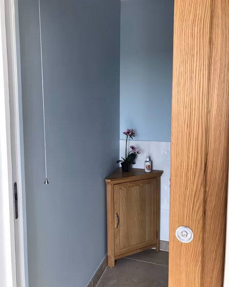 This color scheme is a combination of two shades that are opposite each other on the color wheel. The high contrast between these colors creates a vibrant and dynamic visual effect. For the color Delicate Blue with a green hue, complementary colors are those with a red hue close to 11, such as Little Greene Perennial Grey and Dash of Soot.
