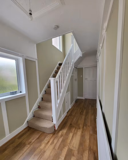 View the photos of real spaces painted with this that were not included in specific categories.Close-ups, painted furniture, storages and dressers, hallways, stairs and ceilings.
