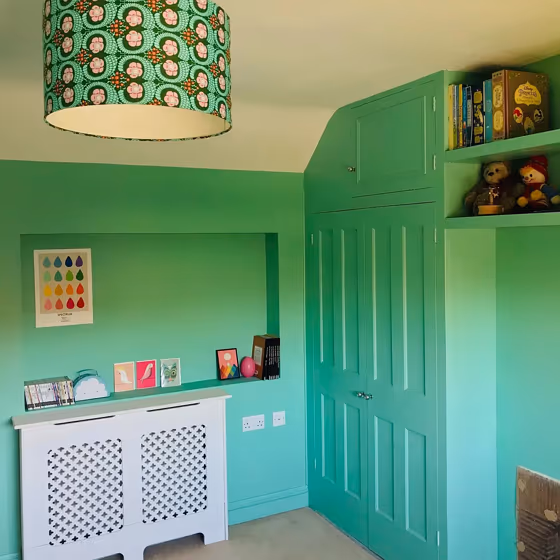 Green Verditer (92) by Little Greene is a soothing color reminiscent of a tranquil garden. This versatile hue pairs beautifully with soft neutrals such as off-white and taupe for a calming and sophisticated space. For a bolder look, consider combining Green Verditer with accents in rich navy or deep charcoal. This color adds a touch of nature-inspired charm to any room, creating a peaceful and inviting ambiance.