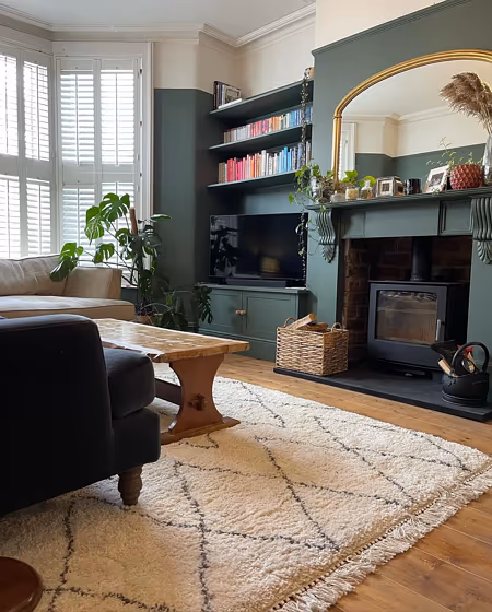 Check out this stunning Dark color used in real living rooms. Explore how this Green shade can create a unique space