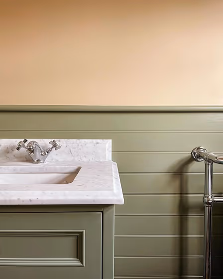 This color scheme is a combination of two shades that are opposite each other on the color wheel. The high contrast between these colors creates a vibrant and dynamic visual effect. For the color Lute with a orange hue, complementary colors are those with a blue hue close to 211, such as Little Greene Juniper Ash and James.