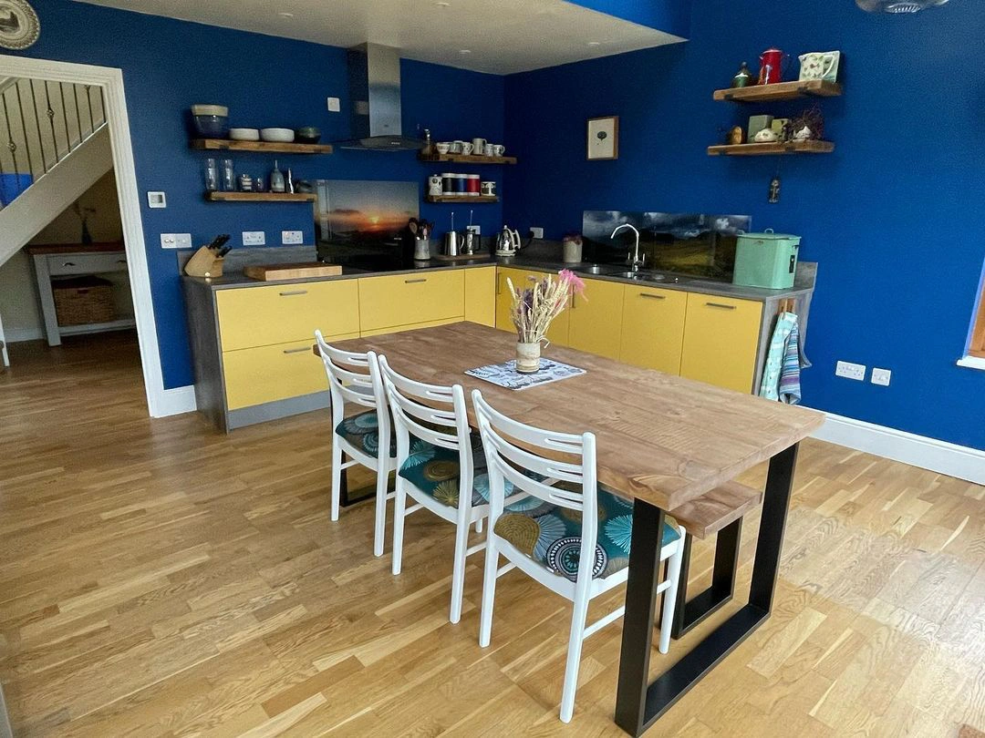 - Cool blue shades make a room feel sleek, fresh, and modern, perfect for bedrooms, bathrooms, and home offices where a sense of calm and sophistication is desired.