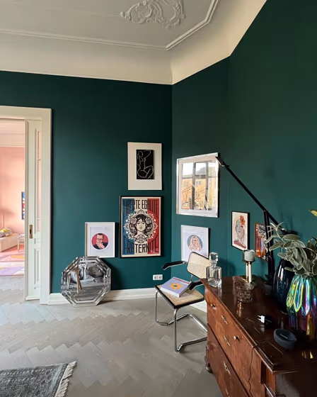 Check out this stunning Dark color used in real living rooms. Explore how this Green shade can create a unique space