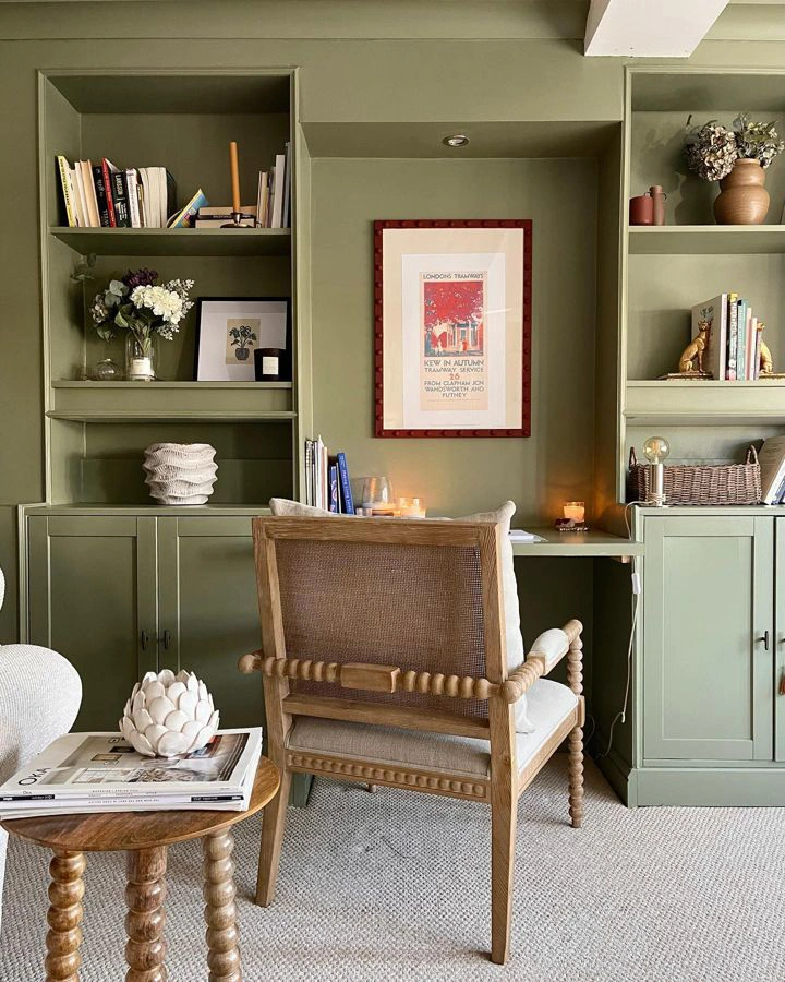 - Warm green shades evoke a sense of nature and comfort, creating a welcoming and soothing environment ideal for living rooms, kitchens, and bedrooms.