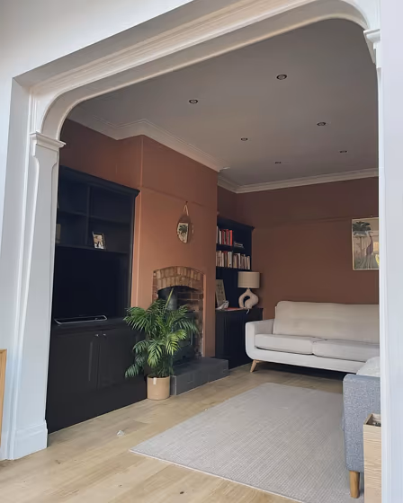 Check out this stunning Mid-tone color used in real living rooms. Explore how this Beige shade can create a unique space
