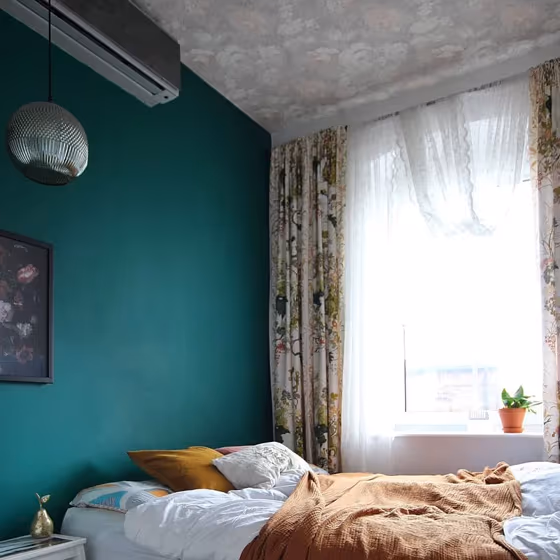Act like a pro: Mixing warm and cool shades is a must have to get harmonius interior. Add accents that contrast with the primary color to create visual balance. If your walls are a warm color, don’t forget to add accent in cold colors (furniture, art, décor). A good practice is too use a complementary color scheme.