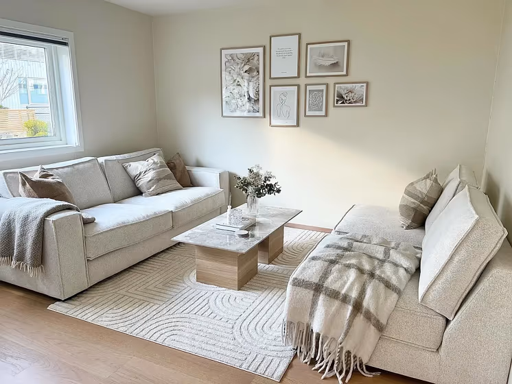 - Warm beige shades create a cozy and inviting atmosphere, making any room feel comfortable and welcoming, perfect for living rooms, bedrooms, and hallways.