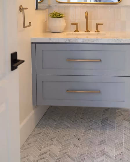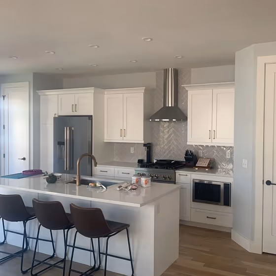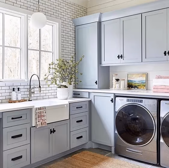 Want a stylish kitchen? View real-life photo examples of this fascinating cool hue is paired with backsplashes, countertops, and hardware.