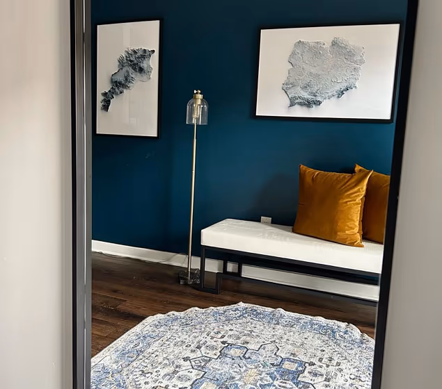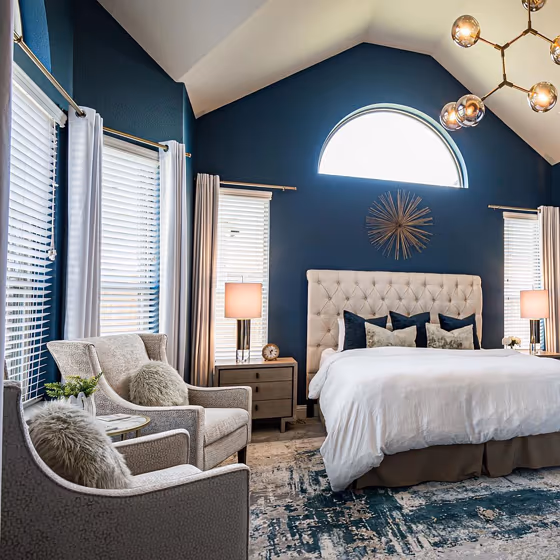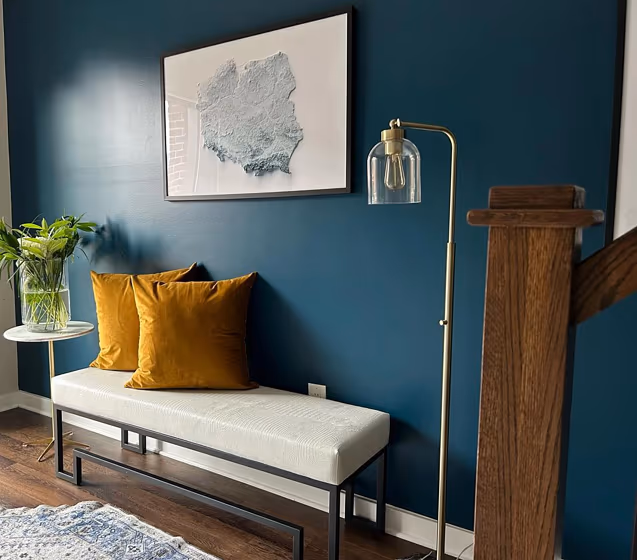 - Cool blue shades make a room feel sleek, fresh, and modern, perfect for bedrooms, bathrooms, and home offices where a sense of calm and sophistication is desired.