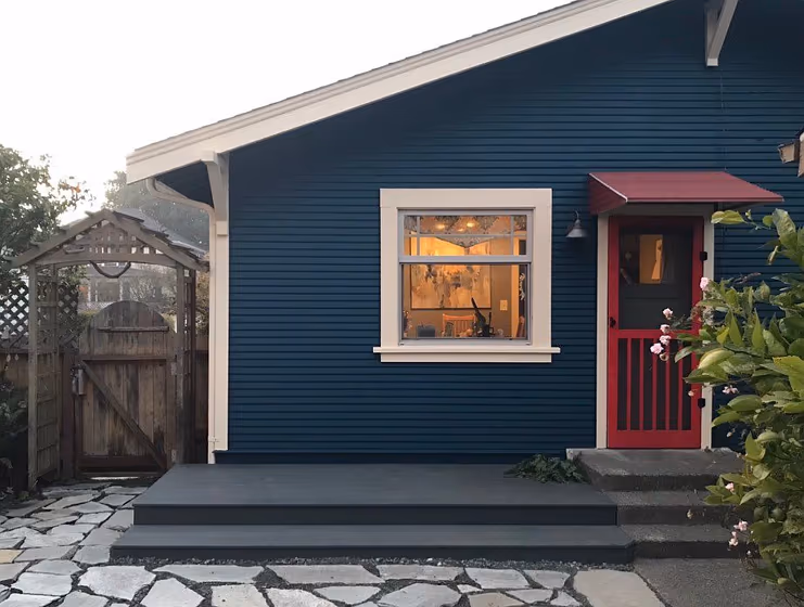 Looking for a fresh new look for your house exterior or starting from skretch? We’ve collected pictures of real-life homes that have been painted with this cool hue. Find inspiration for your house’s exterior, front doors, gates, shutters, frames or windows.