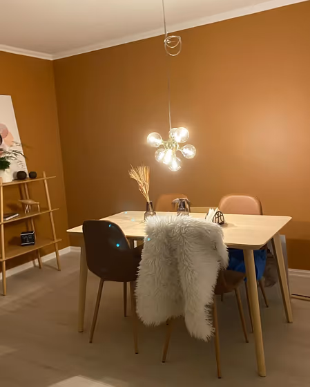 This color scheme is a combination of two shades that are opposite each other on the color wheel. The high contrast between these colors creates a vibrant and dynamic visual effect. For the color Natural Clay with a red hue, complementary colors are those with a green hue close to 204, such as Jotun Nordic Breeze and Gustavian Blue.
