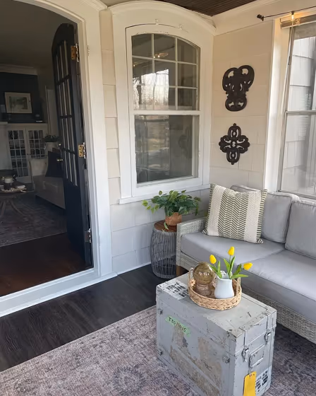Looking for a fresh new look for your house exterior or starting from skretch? We’ve collected pictures of real-life homes that have been painted with this warm hue. Find inspiration for your house’s exterior, front doors, gates, shutters, frames or windows.
