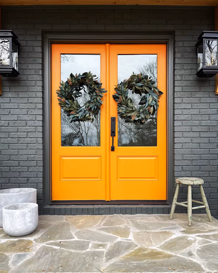 Looking for a fresh new look for your house exterior or starting from skretch? We’ve collected pictures of real-life homes that have been painted with this warm hue. Find inspiration for your house’s exterior, front doors, gates, shutters, frames or windows.