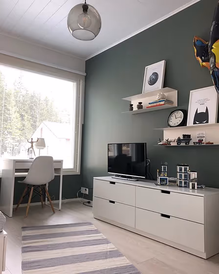 Elevate your space with the captivating charm of Tikkurila N494 Nephrite. This striking shade of deep green (N494) exudes a sense of calm and sophistication, making it the perfect choice for creating a cozy and inviting atmosphere in any room. Pair Nephrite with crisp whites and soft neutrals for a timeless look, or add a pop of contrast with accents in warm copper tones or earthy browns. Whether used as a statement wall color or as part of a harmonious color scheme, N494 Nephrite brings a touch of elegance to any interior design project. Explore the endless possibilities of this versatile hue and transform your space into a sanctuary of style and comfort.