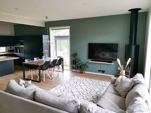 Check out this stunning Dark color used in real living rooms. Explore how this Green shade can create a unique space