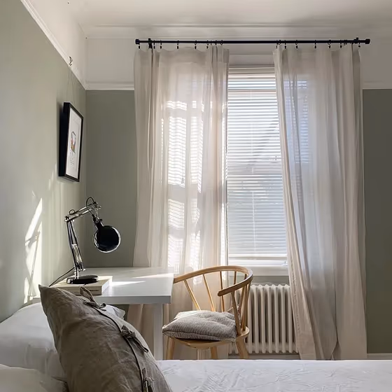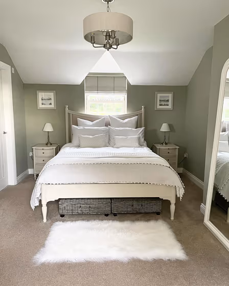 We’ve hand-picked a beautiful collection of photos of this amazing Beige shade used in real bedrooms. Take a look and imagine how this wonderful warm Mid-tone paint color could transform your own bedroom space.