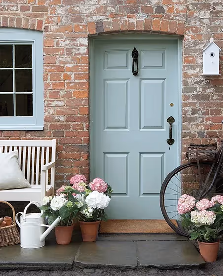 Looking for a fresh new look for your house exterior or starting from skretch? We’ve collected pictures of real-life homes that have been painted with this warm hue. Find inspiration for your house’s exterior, front doors, gates, shutters, frames or windows.