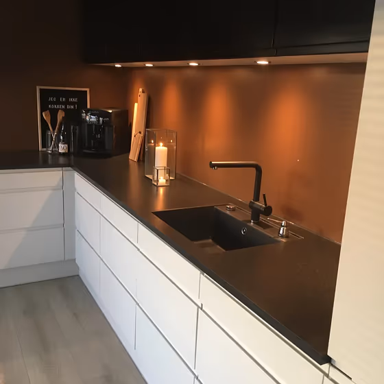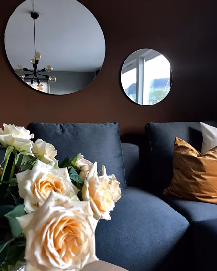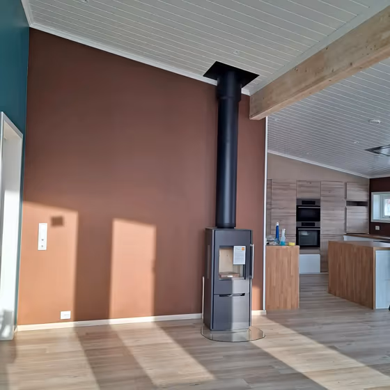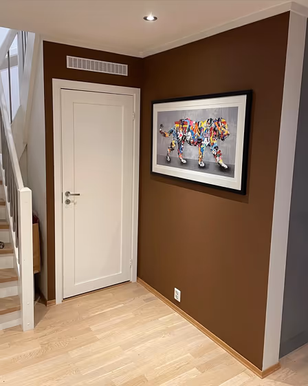 This color scheme is a combination of two shades that are opposite each other on the color wheel. The high contrast between these colors creates a vibrant and dynamic visual effect. For the color Norwegian Wood with a red hue, complementary colors are those with a green hue close to 202, such as Jotun Nordic Breeze and Gustavian Blue.