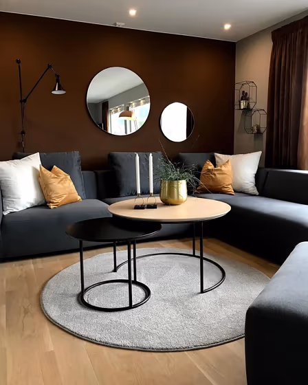 - Using dark warm shades like rich reds and browns creates a cozy and intimate atmosphere, perfect for dining rooms, libraries, and living rooms. These colors add depth and warmth. However, be careful when using them in small spaces or rooms with low ceilings, as they can make the space feel even smaller.