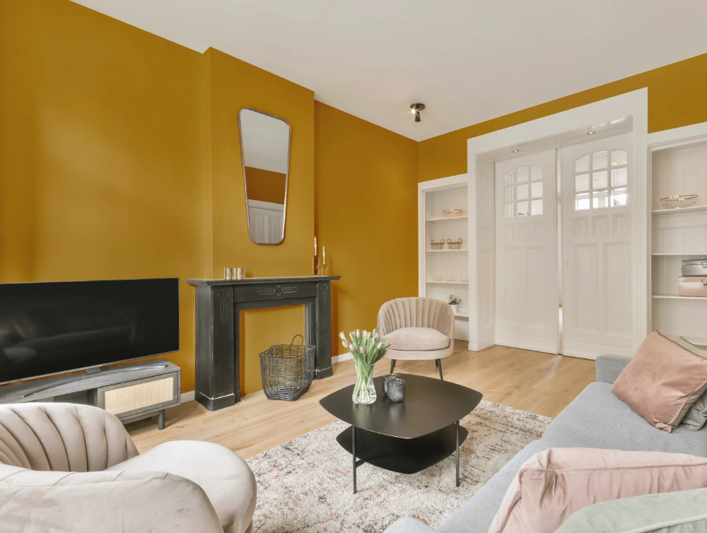 - Warm yellow shades bring a sunny and cheerful atmosphere to a space, making it feel lively and welcoming, perfect for kitchens, living rooms, and play areas.