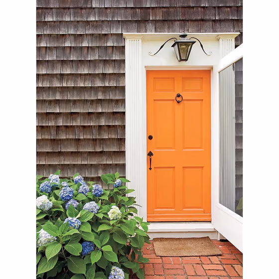 Looking for a fresh new look for your house exterior or starting from skretch? We’ve collected pictures of real-life homes that have been painted with this warm hue. Find inspiration for your house’s exterior, front doors, gates, shutters, frames or windows.