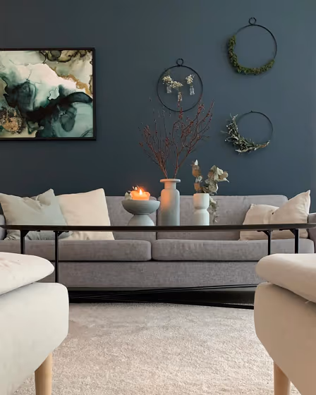 Check out this stunning Dark color used in real living rooms. Explore how this Blue shade can create a unique space