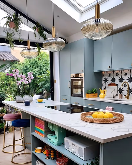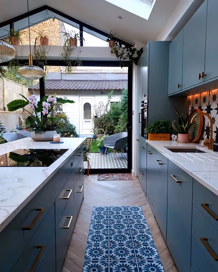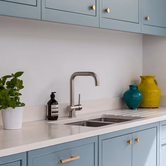 Want a stylish kitchen? View real-life photo examples of this fascinating cool hue is paired with backsplashes, countertops, and hardware.