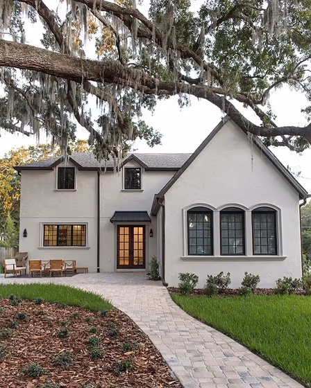 Looking for a fresh new look for your house exterior or starting from skretch? We’ve collected pictures of real-life homes that have been painted with this warm hue. Find inspiration for your house’s exterior, front doors, gates, shutters, frames or windows.