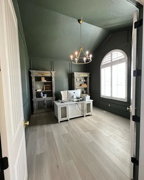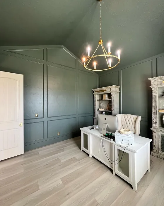 Sherwin Williams SW 6208 Pewter Green is a sophisticated hue that exudes timeless elegance. This rich moody color combines beautifully with warm neutrals like SW 7008 Alpaca and cool tones such as SW 6258 Tricorn Black. Pairing Pewter Green with soft whites like SW 7004 Snowbound creates a serene and balanced aesthetic, while adding pops of SW 6259 Spatial White can bring a fresh and modern twist to any space. Whether used on walls or as an accent, Pewter Green adds depth and character to any room.