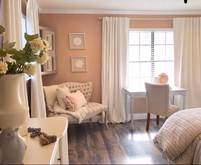 We’ve hand-picked a beautiful collection of photos of this amazing Beige shade used in real bedrooms. Take a look and imagine how this wonderful warm Mid-tone paint color could transform your own bedroom space.