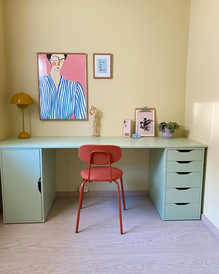 Act like a pro: Mixing warm and cool shades is a must have to get harmonius interior. Add accents that contrast with the primary color to create visual balance. If your walls are a warm color, don’t forget to add accent in cold colors (furniture, art, décor). A good practice is too use a complementary color scheme.