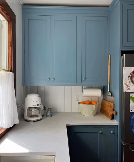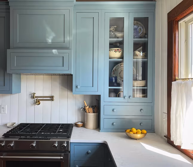 Want a stylish kitchen? View real-life photo examples of this fascinating cool hue is paired with backsplashes, countertops, and hardware.