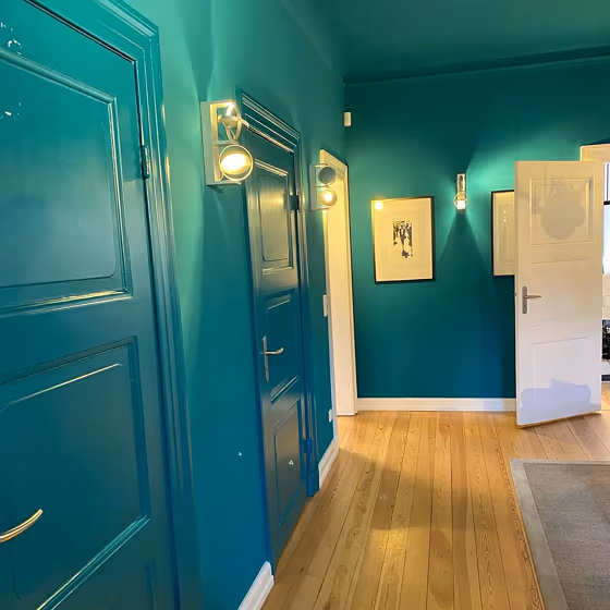 View the photos of real spaces painted with this green that were not included in specific categories.Close-ups, painted furniture, storages and dressers, hallways, stairs and ceilings.