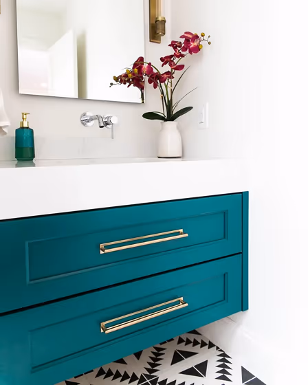 This color scheme is a combination of two shades that are opposite each other on the color wheel. The high contrast between these colors creates a vibrant and dynamic visual effect. For the color Poseidon with a green hue, complementary colors are those with a red hue close to 353, such as Sherwin Williams Azalea Flower and Jaipur Pink.