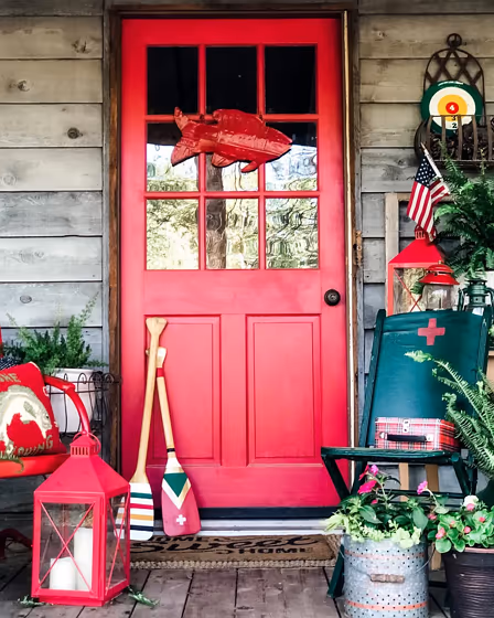 Looking for a fresh new look for your house exterior or starting from skretch? We’ve collected pictures of real-life homes that have been painted with this warm hue. Find inspiration for your house’s exterior, front doors, gates, shutters, frames or windows.