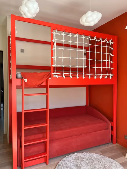 View the photos of real spaces painted with this red that were not included in specific categories.Close-ups, painted furniture, storages and dressers, hallways, stairs and ceilings.