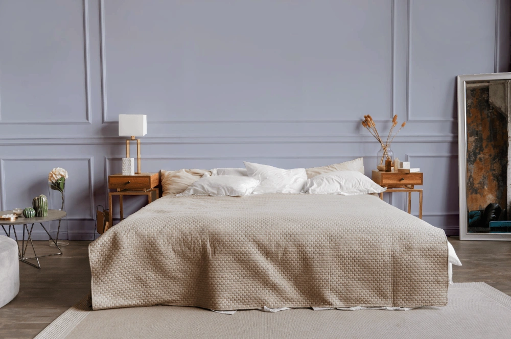 We’ve hand-picked a beautiful collection of photos of this amazing Beige shade used in real bedrooms. Take a look and imagine how this wonderful cool Mid-tone paint color could transform your own bedroom space.