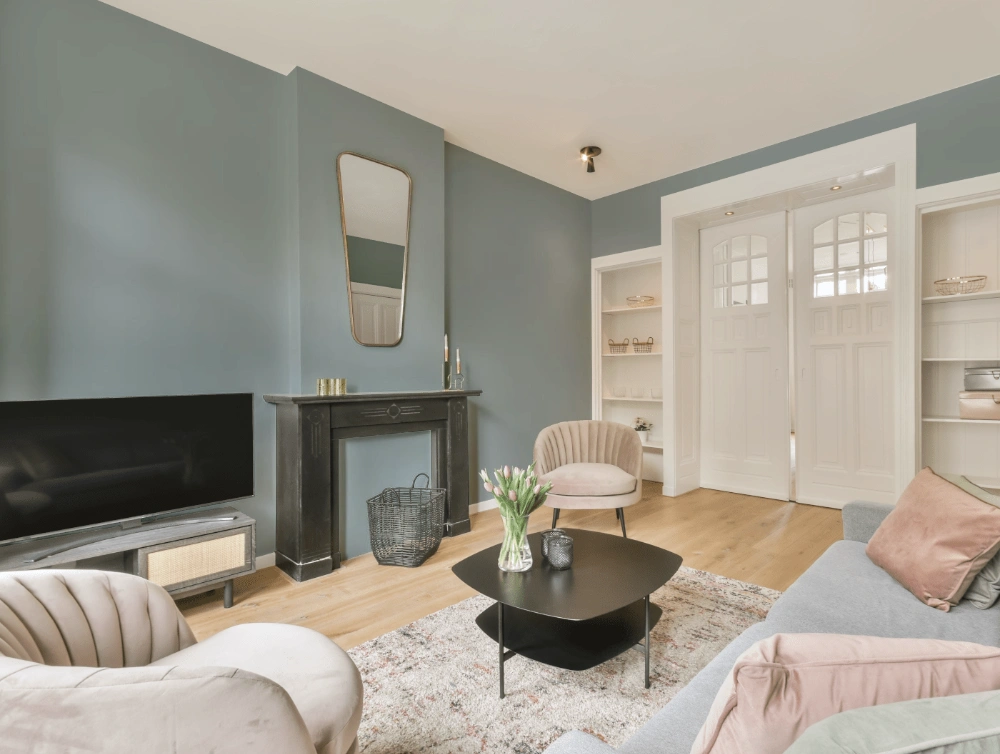 - Cool blue shades make a room feel sleek, fresh, and modern, perfect for bedrooms, bathrooms, and home offices where a sense of calm and sophistication is desired.