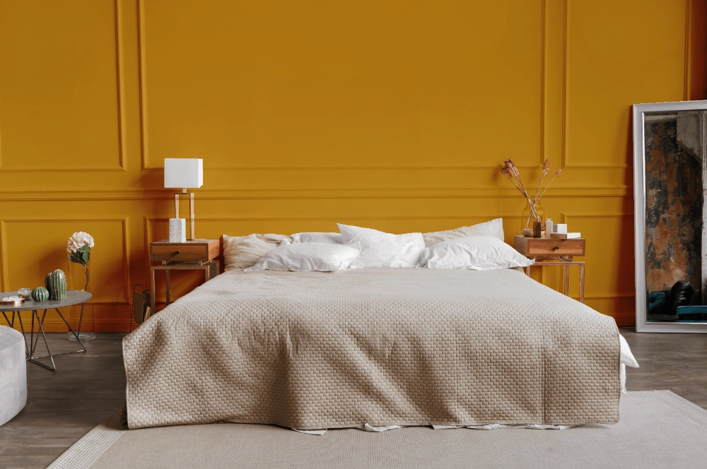- Warm yellow shades bring a sunny and cheerful atmosphere to a space, making it feel lively and welcoming, perfect for kitchens, living rooms, and play areas.